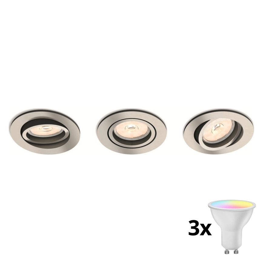 • Philips - 3er-Set dimmbare LED-RGBW-Einbauleuchten 1x GU10/4,8W/230V, mattchrom + Fernbedienung