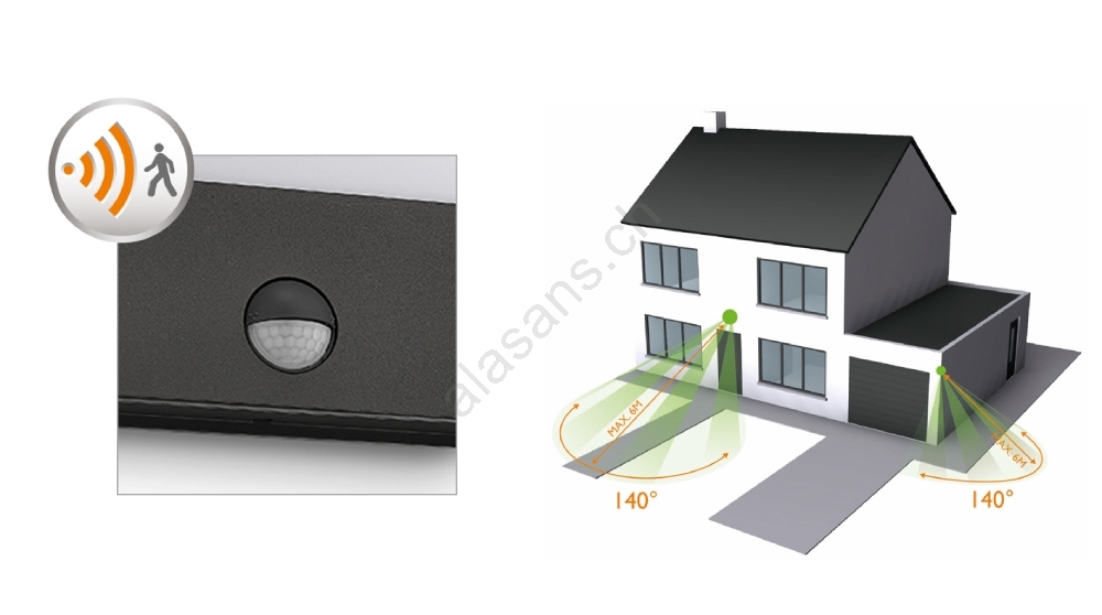 • Der PIR-Sensor reagiert auf schwache Infrarotstrahlung, die vom menschlichen Körper ausgeht. Wenn sich eine Person im Erfassungsbereich des Sensors bewegt, leuchtet das Licht auf. Nach dem Verlassen des Erfassungsbereichs schaltet sich das Licht automatisch aus.