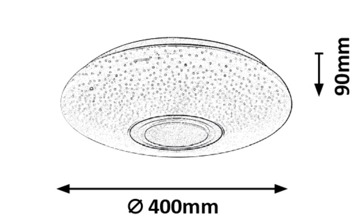 • Der Abstand der Leuchte mit einem Durchmesser von 400 mm zur Decke beträgt 90 mm.