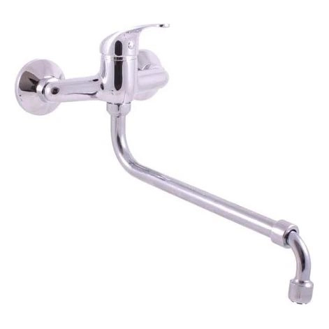 • Wandmontierte Einhebel-Spültischarmatur mit rundem, teleskopischem Auslauf