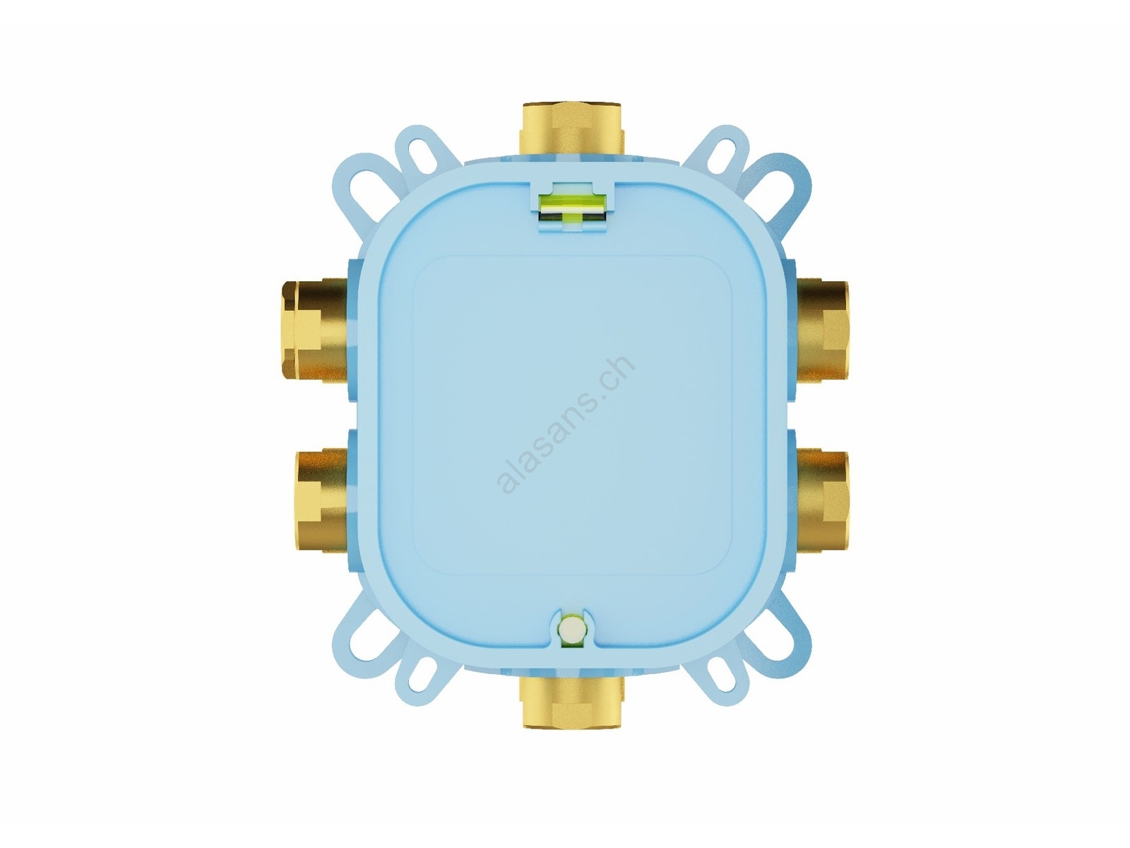 • R-box ist ein universelles Installationssystem für Einhebel-Wannen- und Dusch-Unterputzarmaturen, das in der Wand eingebaut wird.