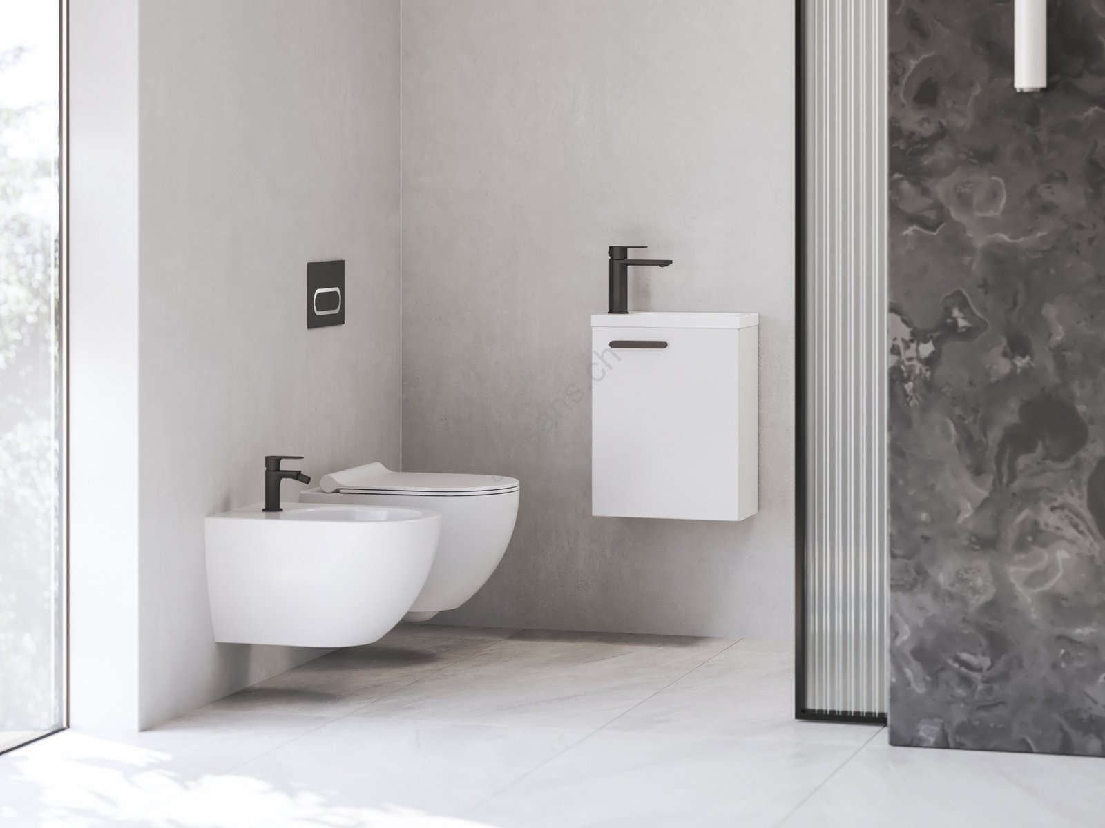 • Die mattschwarze Oberfläche verleiht dem Badezimmer ein elegantes und zeitloses Erscheinungsbild.