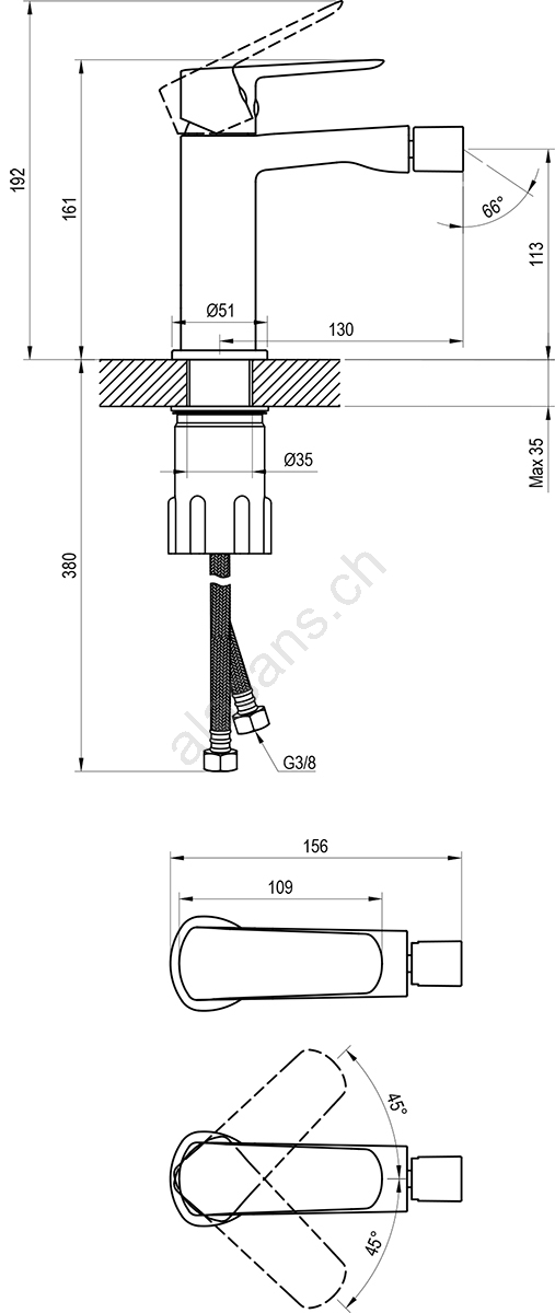 • Anschlussschläuche: flexibel, Länge 450 mm, Anschluss G3/8.