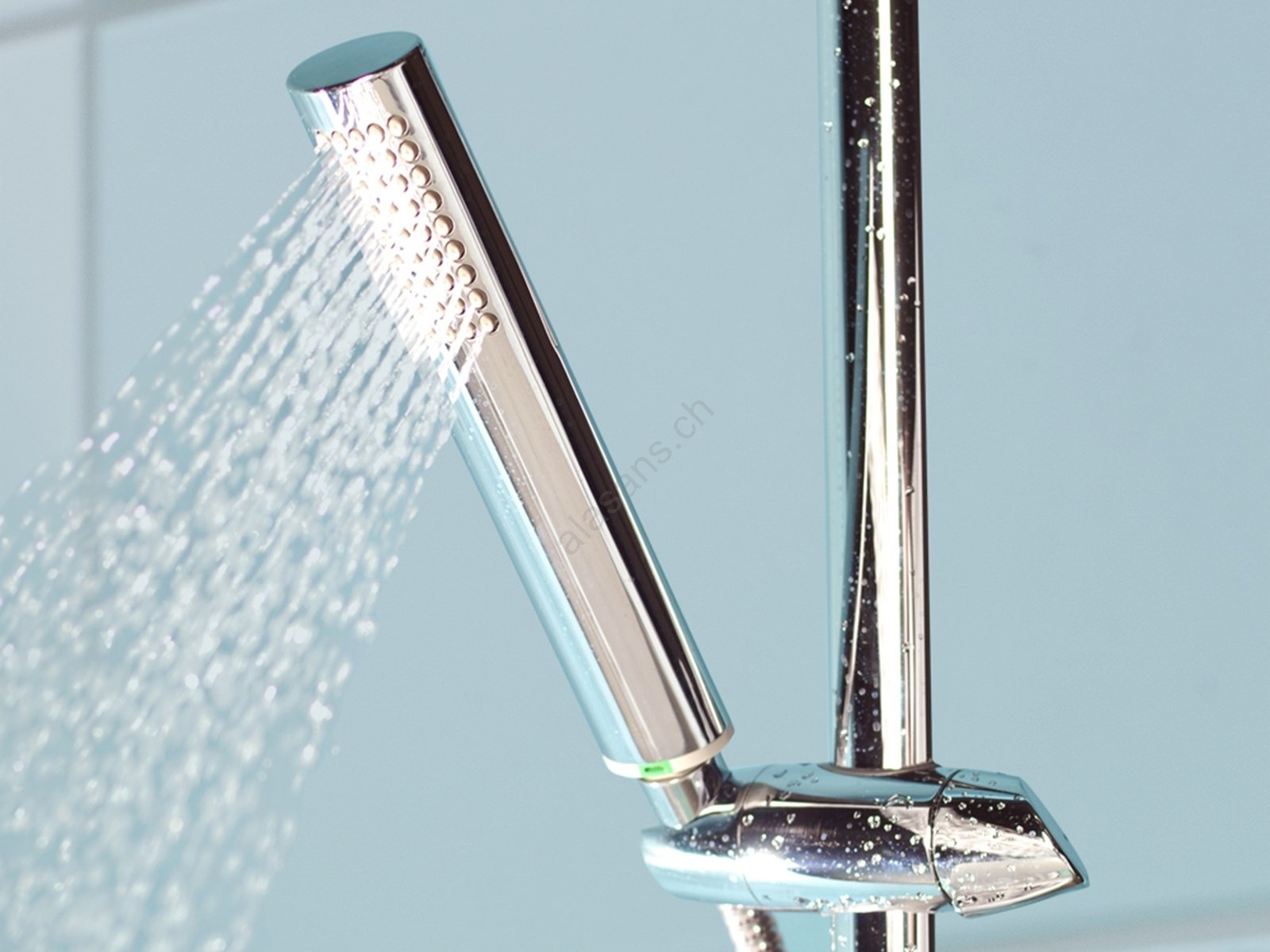 • Die Handbrause mit Air-Funktion saugt Luft in den Wasserstrahl, sorgt so für ein angenehmeres Duscherlebnis und reduziert gleichzeitig den Wasserverbrauch auf 6,5 Liter pro Minute.