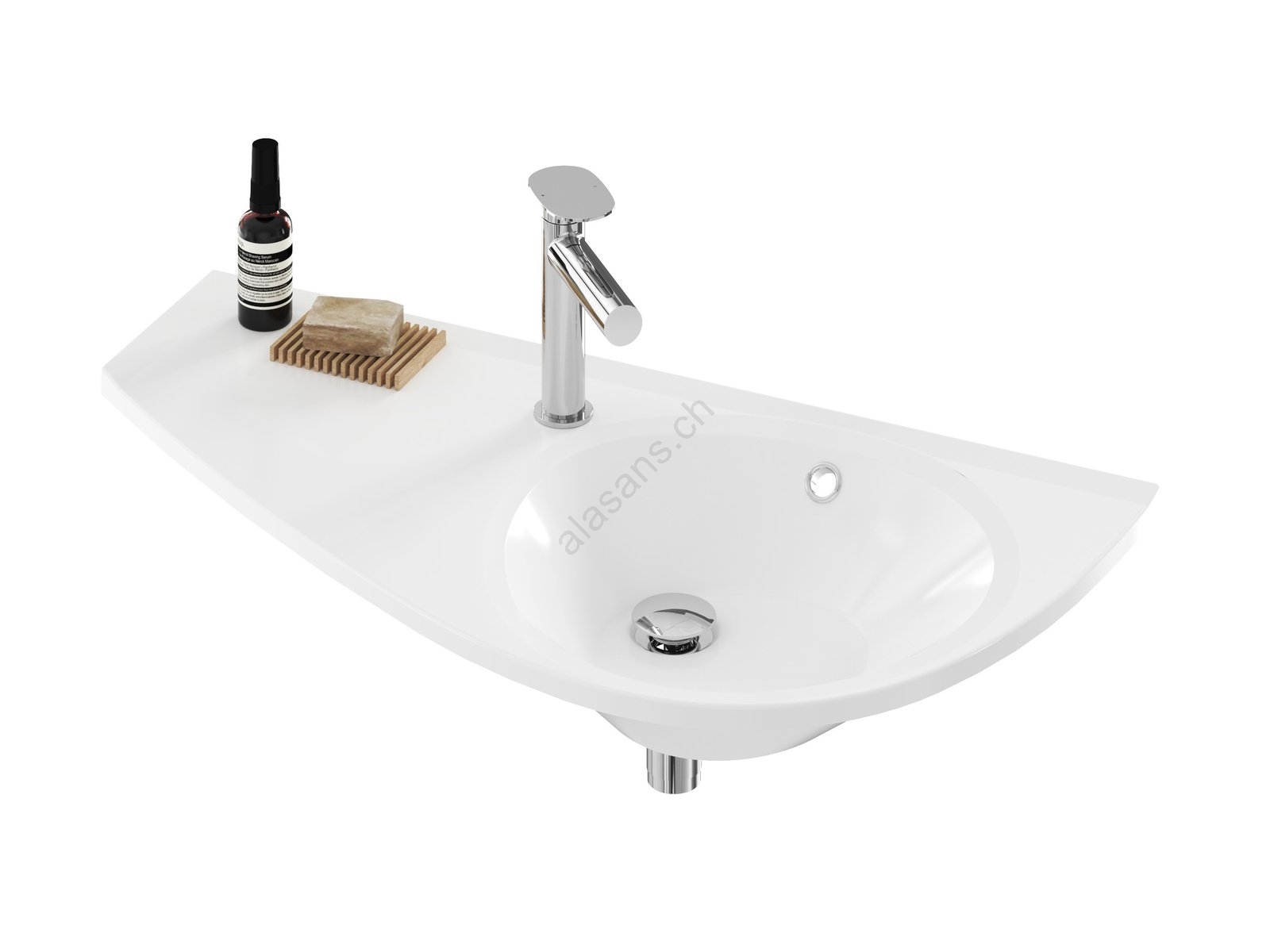 • Das wandhängende Waschbecken Avocado in linker Ausführung wurde für platzsparende Nutzung und ein modernes Erscheinungsbild auch in kleineren Bädern konzipiert.