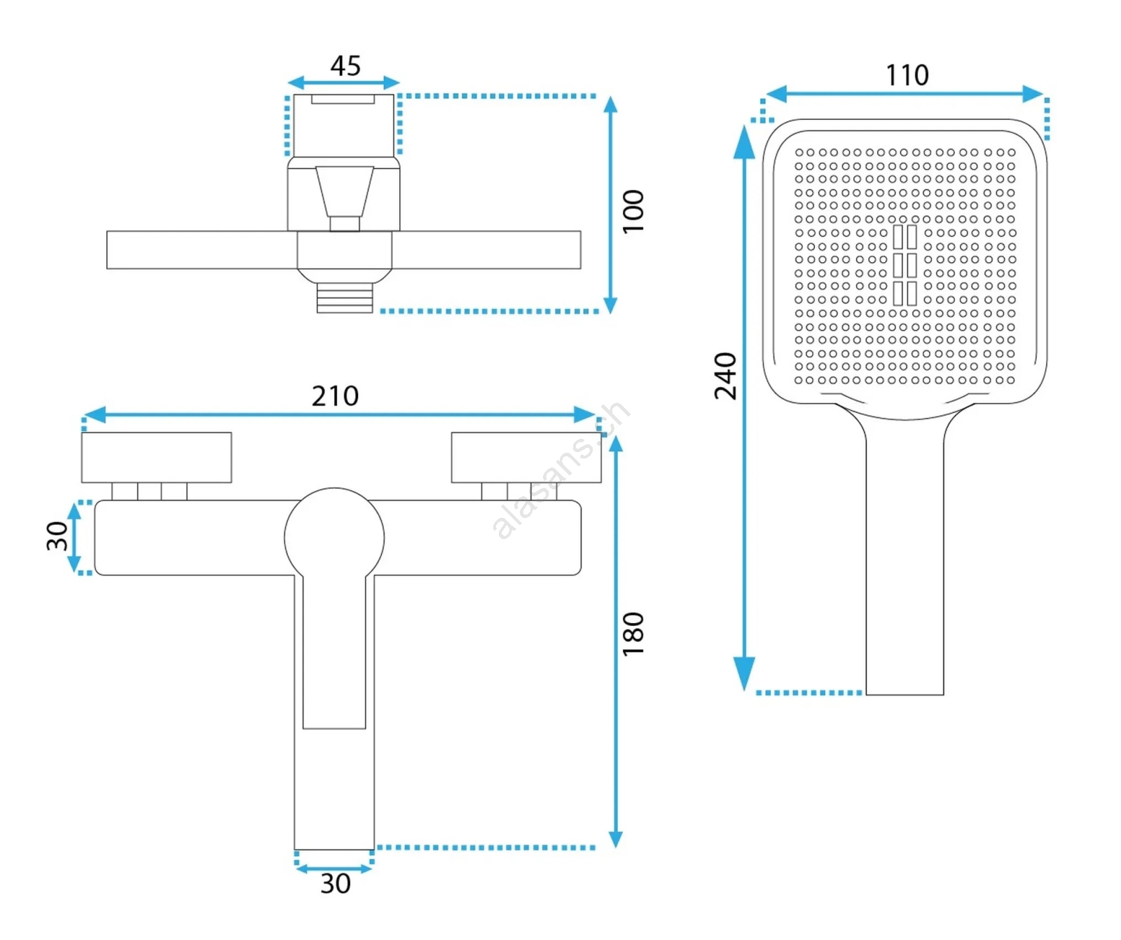 • Das Set enthält: Wannenarmatur, Handbrause, Brauseschlauch, Halter für Handbrause.