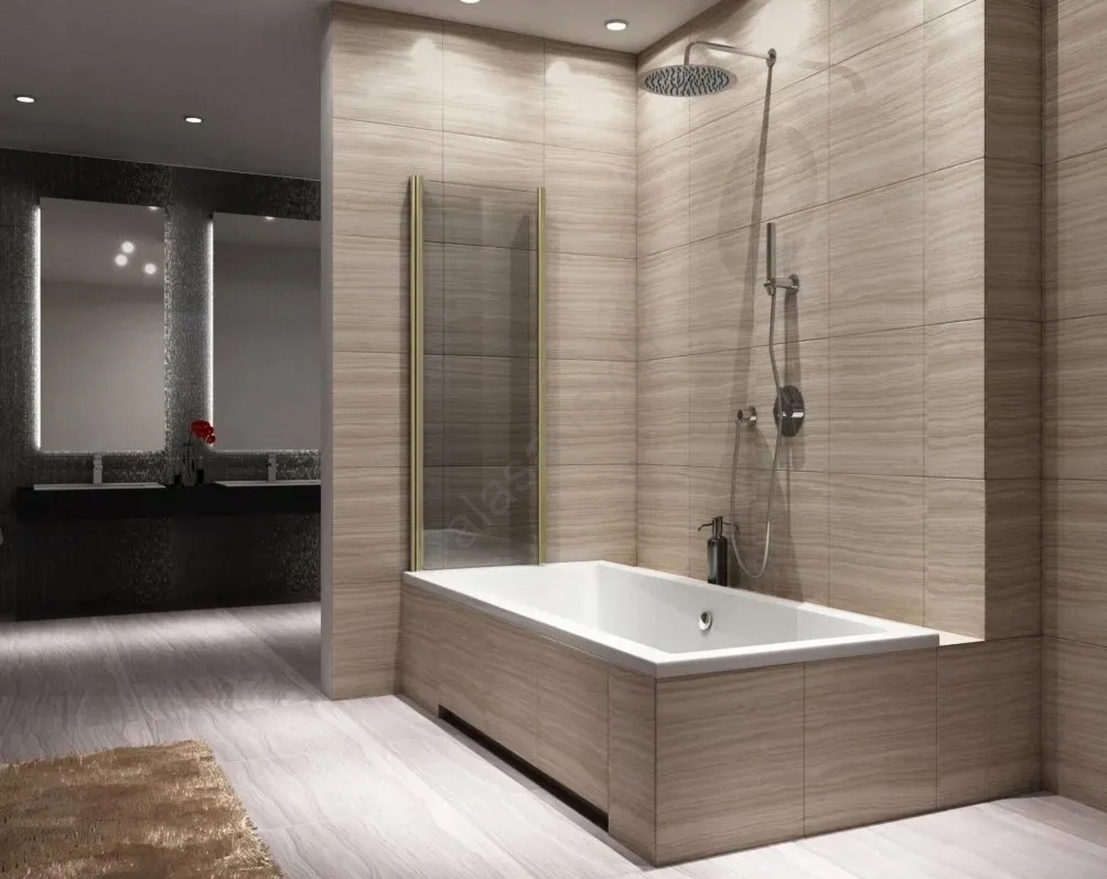 REA-K9777 - Faltbare Badewannenabtrennung AGAT 140x100 cm gebürstetes Gold/klar