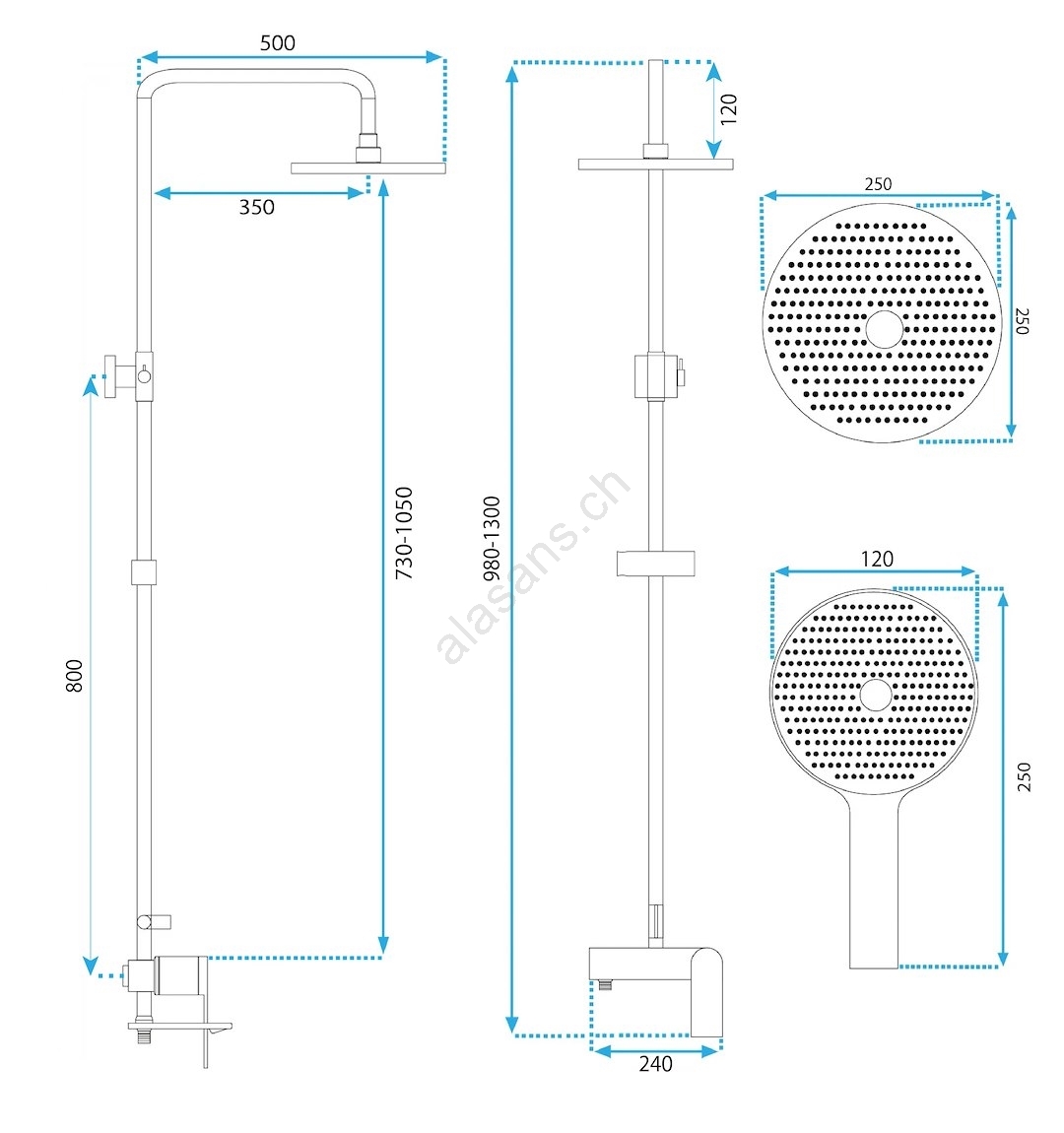 • Einstellbereich der Duschstange: 98 - 130 cm.