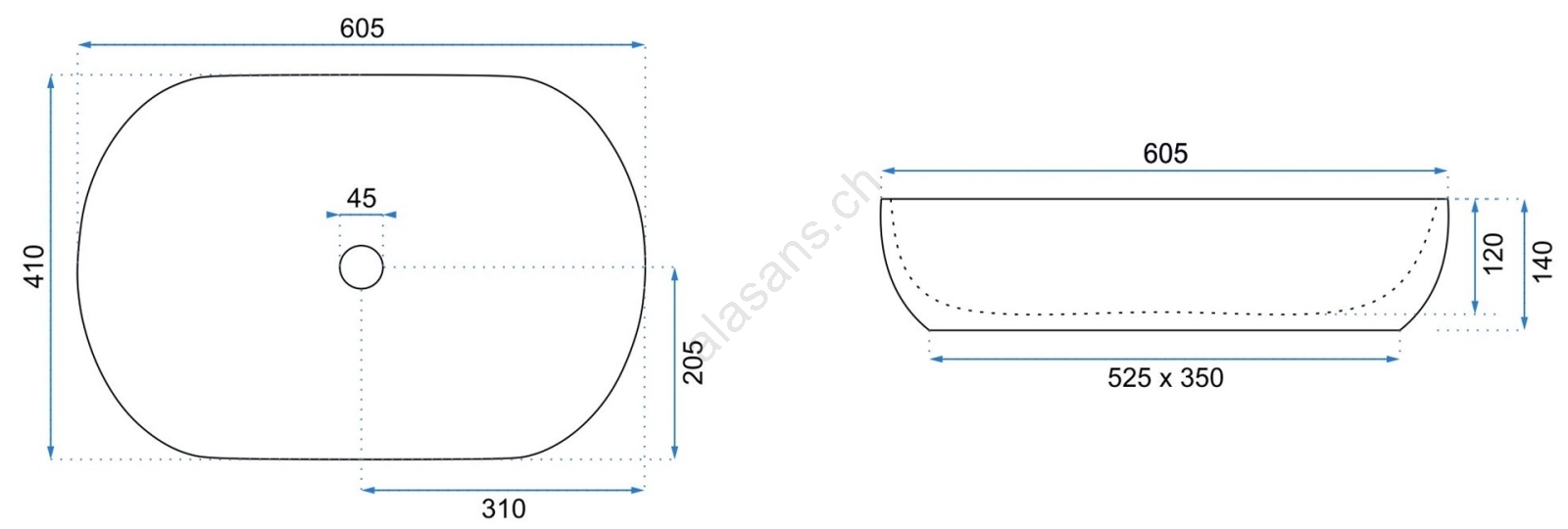 • REA-U0024 - Aufsatzwaschbecken CLEO 41 x 60,5 cm Keramik / Hochglanzweiß