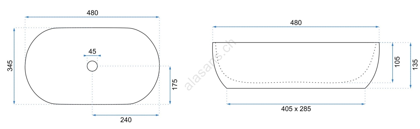 REA-U0416 - Aufsatzwaschbecken AMELIA 34,5 x 48 cm Keramik/hochglanzweiß