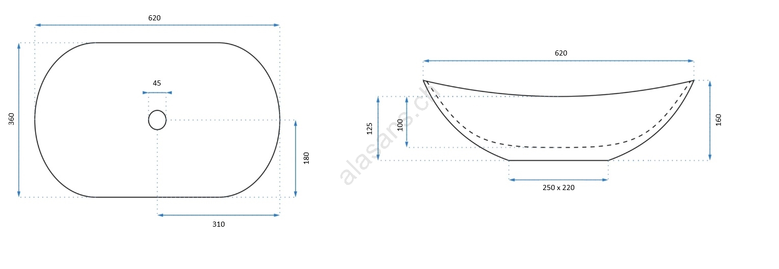 REA-U8597 - Aufsatzwaschbecken ROYAL 36x62 cm Keramik/Marmor-Dekor
