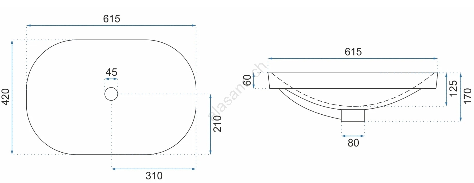 • Das Waschbecken ist aus hochwertiger Sanitärkeramik gefertigt.