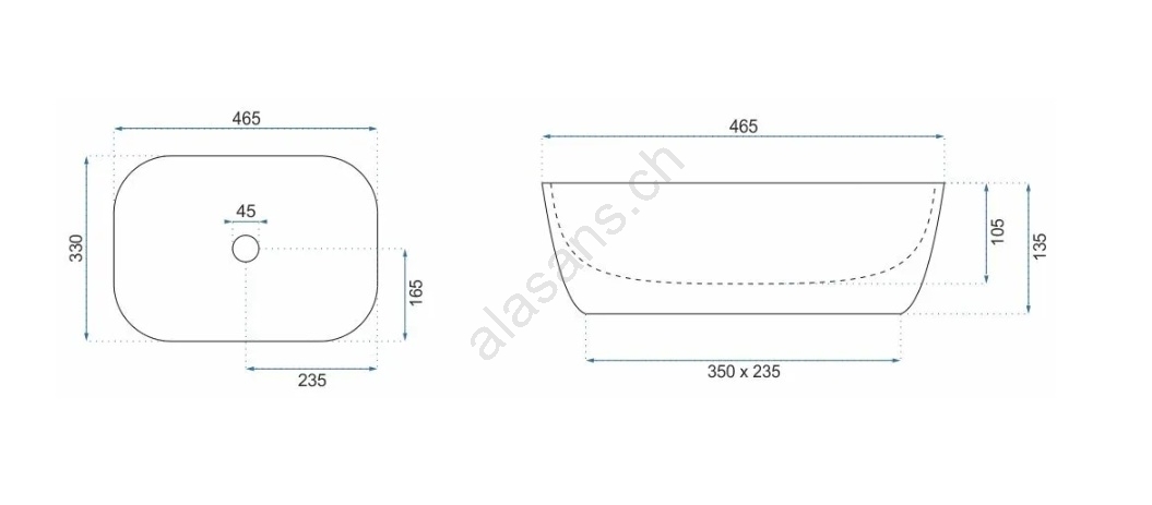 • REA-U6521 - Aufsatzwaschbecken BELINDA SLIM 33x46,5 cm Keramik/Hochglanzweiß