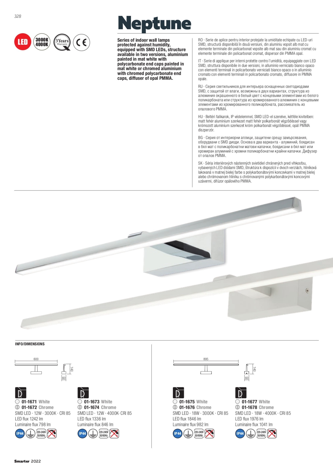 • Redo 01-1674 - NEPTUNE LED-Badspiegelleuchte, 12 W, 230 V, 60 cm, IP44, Hochglanz-Chrom