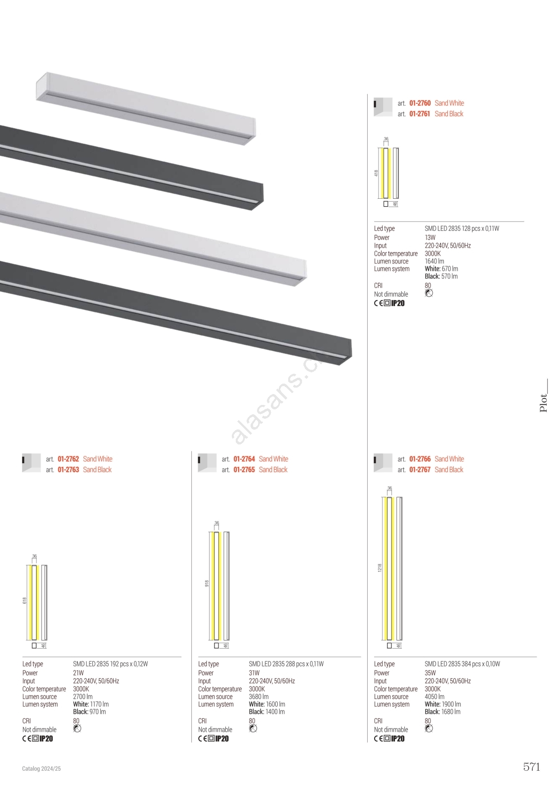• Redo 01-2766 - LED-Wandleuchte PLOT LED/35W/230V 120 cm weiß