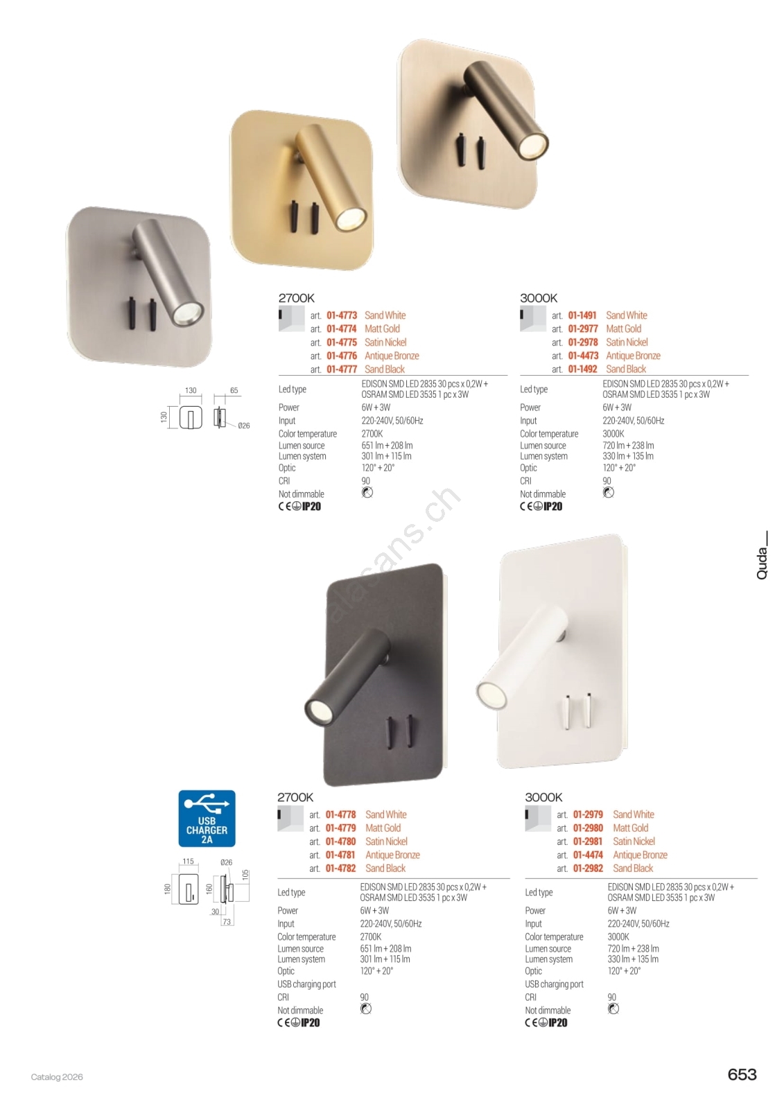 • Redo 01-4473 - LED-Wandleuchte QUDA LED/6W/230V + LED/3W CRI 90 USB, bronzefarben