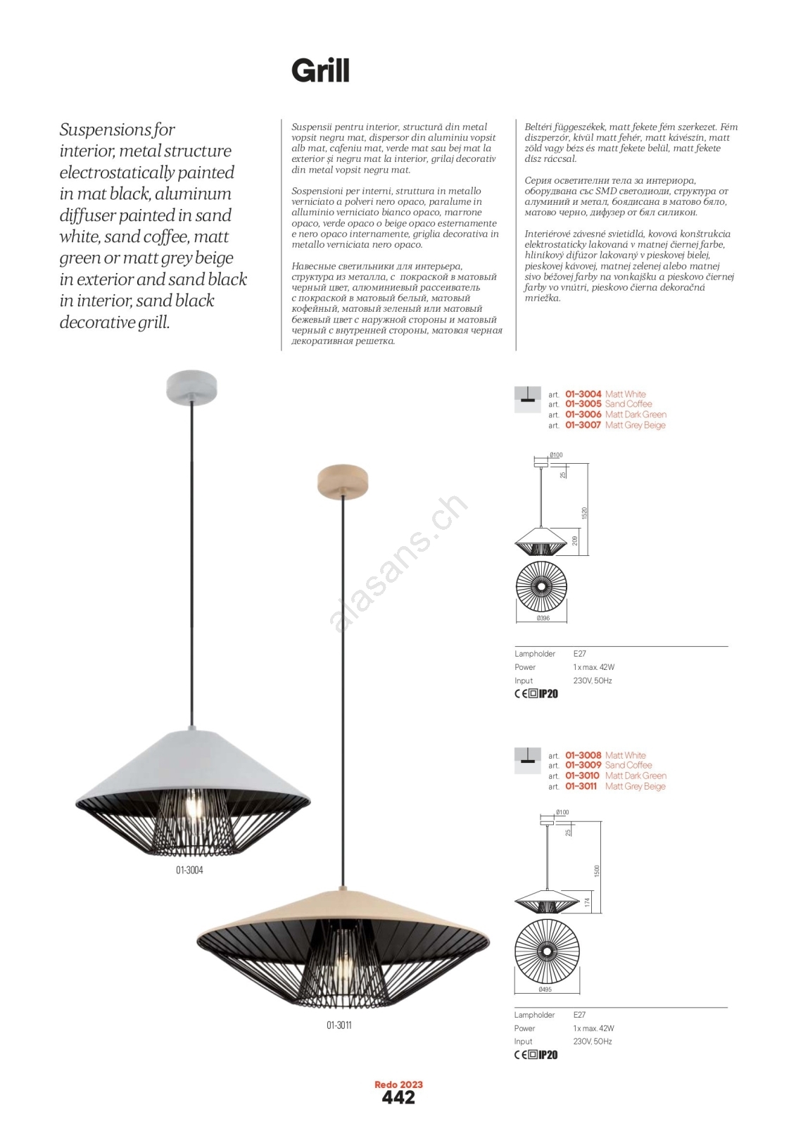 • Redo 01-3004 - Pendelleuchte an Kabel GRILL 1xE27/42W/230V Ø 39,6 cm schwarz/weiß