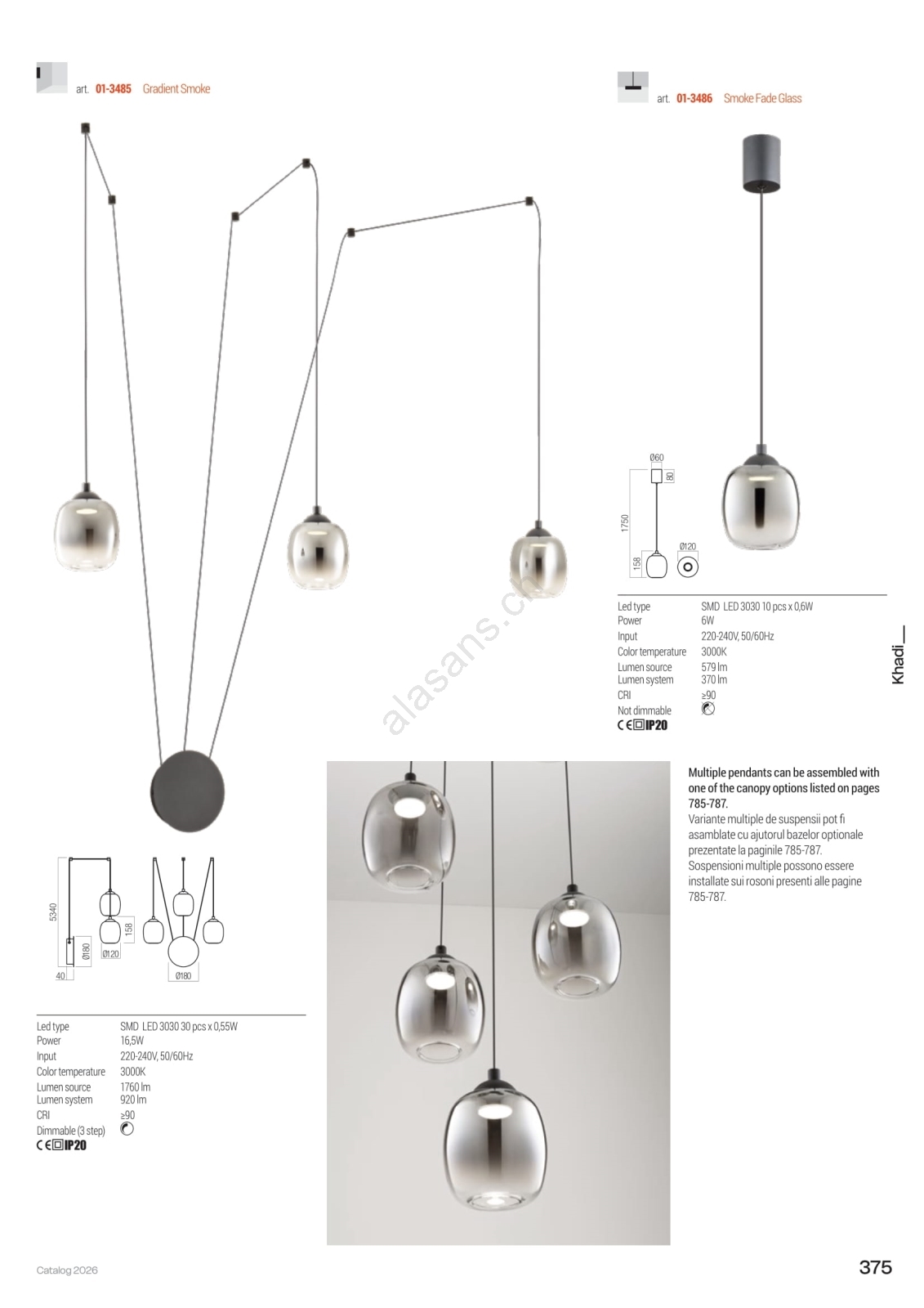 Redo 01-3485 - Dimmbare LED-Wandleuchte KHADI 3xLED/5,5W/230V CRI 90 Ø 12 cm schwarz/rauchfarben