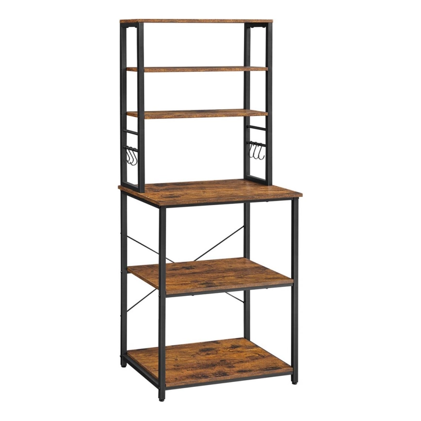 • Der untere mittlere Regalboden lässt sich in 2 Höhen verstellen, sodass Sie Geräte verschiedener Größen darauf platzieren können – vom Mixer über die Heißluftfritteuse bis hin zu Töpfen und Pfannen.