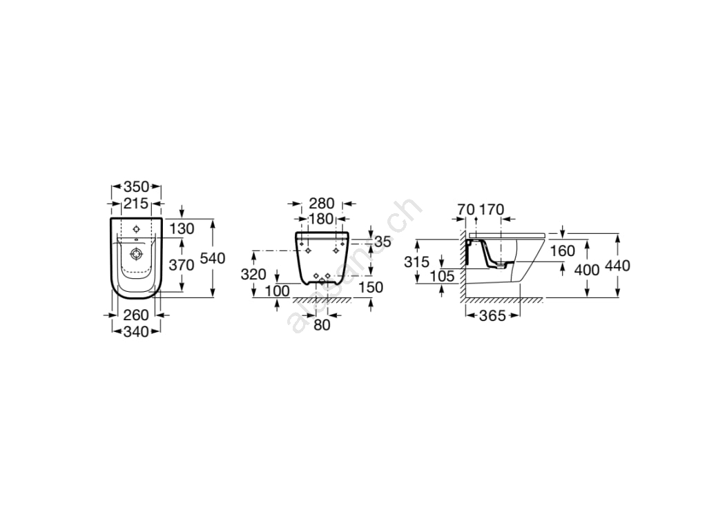 • Praktisches wandhängendes Bidet.