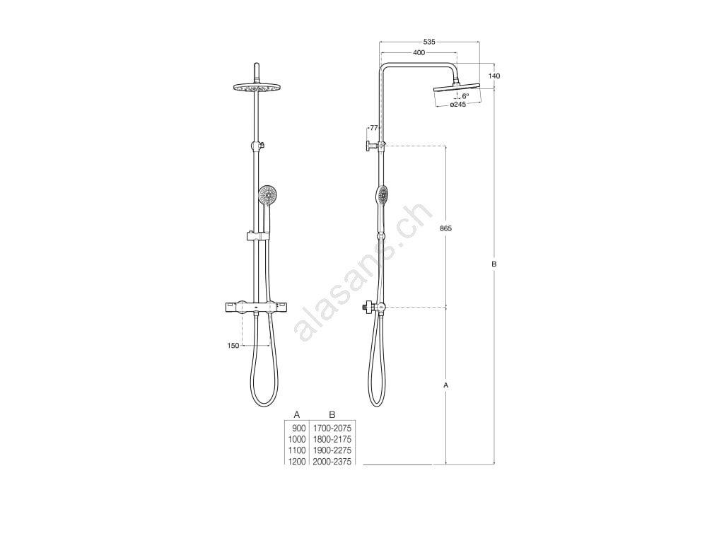 • Lieferumfang: Duscharmatur, Handbrause, Kopfbrause, flexibler Schlauch, verschiebbare Wandhalterung.