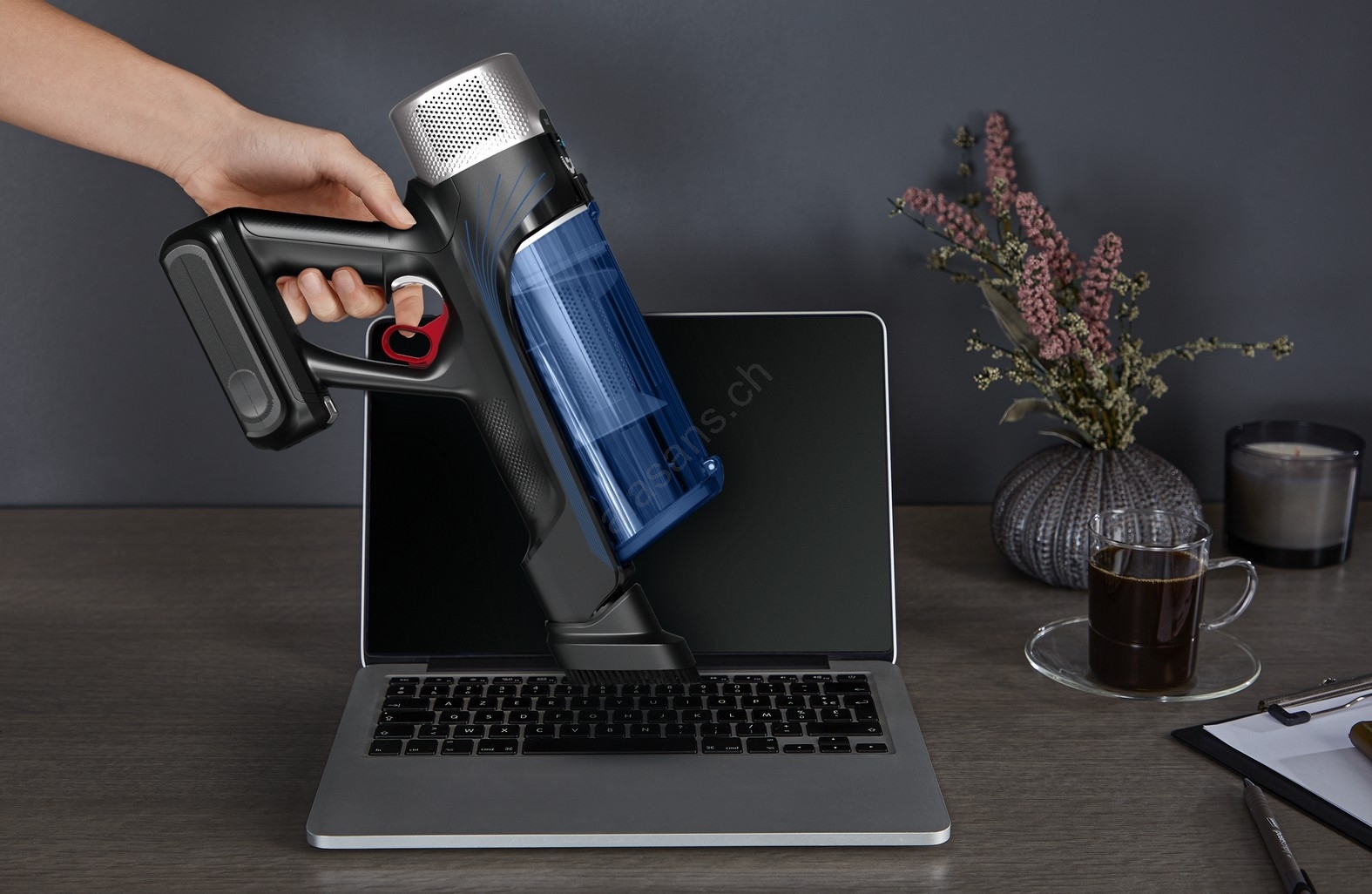 • Sehr leistungsstarker kabelloser Stielstaubsauger, konzipiert für eine umfassende Reinigung: für trockene und feuchte Flächen dank der „Aqua“-Technologie – Saugen und Wischen in einem Arbeitsgang.