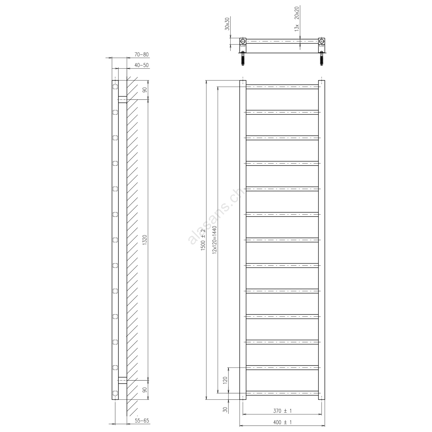Sapho - Badheizkörper METRO DOS, 323 W, 40×150 cm, matt schwarz