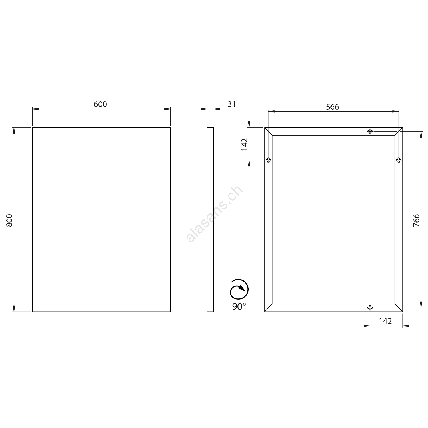 • Seine Abmessungen betragen 600x800 mm.