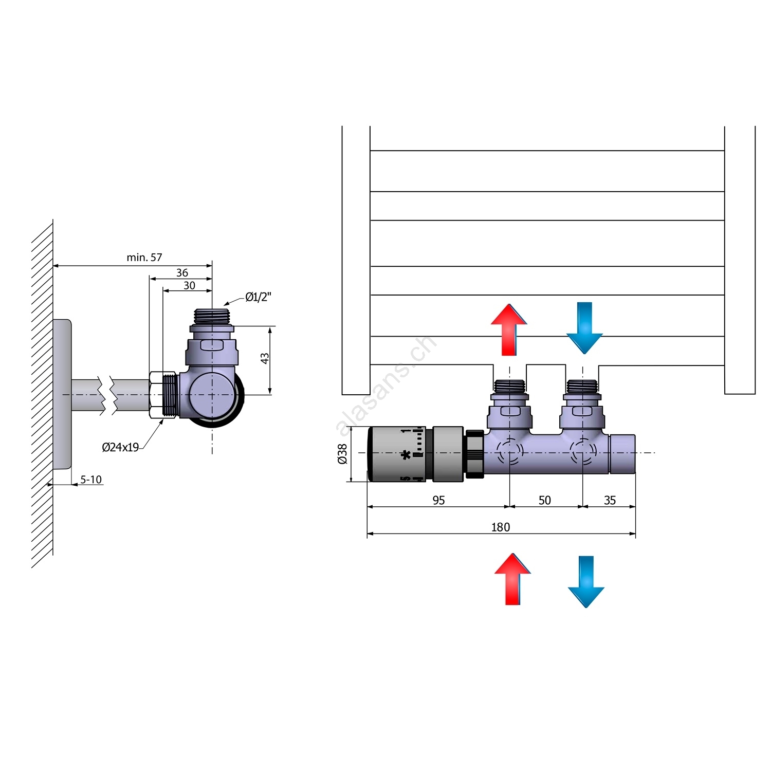 Sapho - Thermostatische Anschlussgarnitur für Mittelanschluss TWIN links / Hochglanz-Chrom