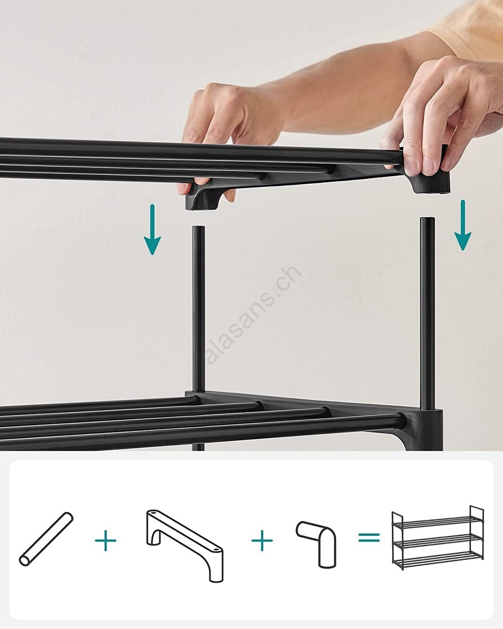 • Entfernen Sie einfach die oberen Querstreben und stapeln Sie das Regal anschließend auf ein zweites, um zusätzlichen Platz zu schaffen.