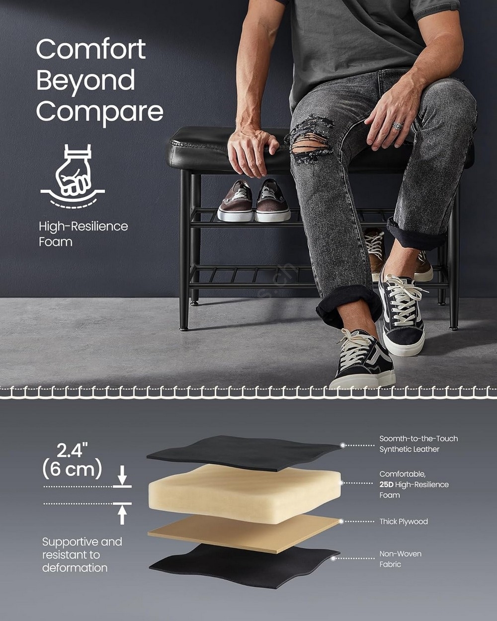 • Weicher Sitzpolster aus 8 cm hohem 25D-Schaumstoff, ermöglicht Ihnen ein bequemes Sitzen und das An- und Ausziehen der Schuhe.