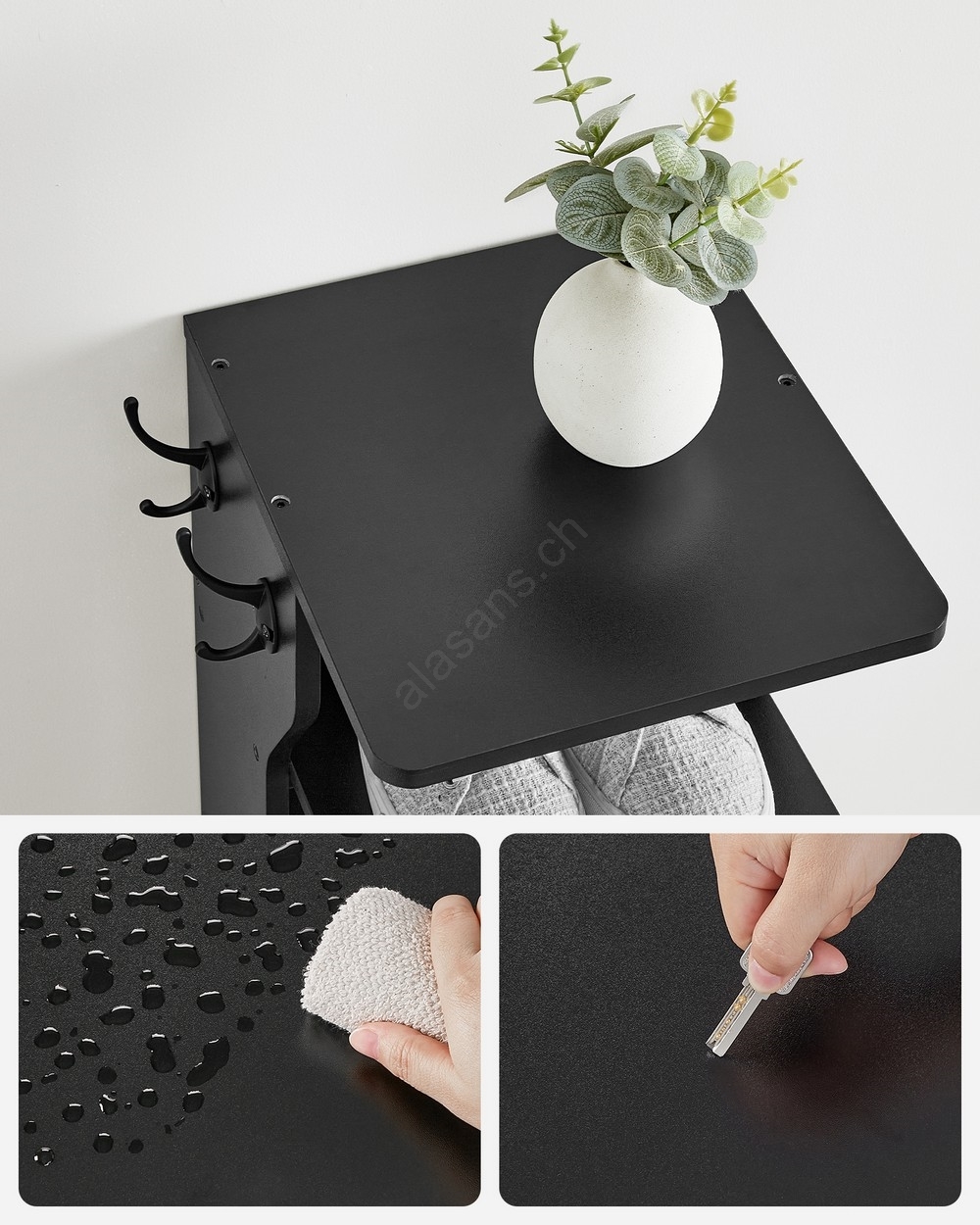 • Hängen Sie Schlüssel und Geldbörsen an 2 Haken, die bei Bedarf links oder rechts montiert werden können.