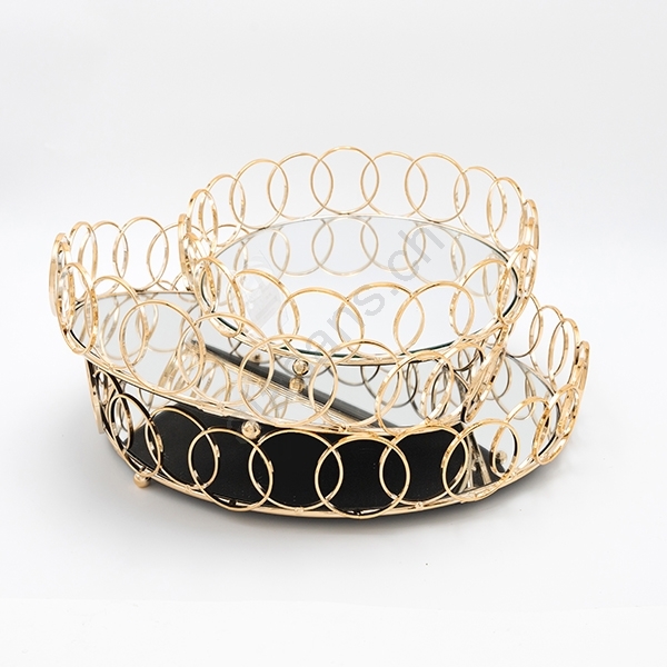 SET 3x Dekoratives Tablett d 27/33/37 cm golden