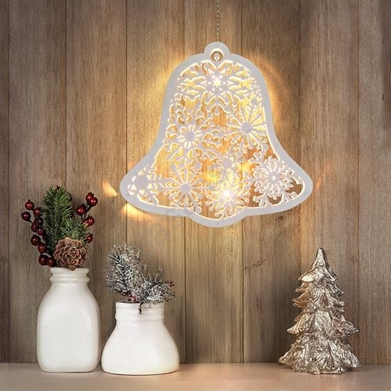 • Dekorative Weihnachtsglocke aus Holz mit LEDs.