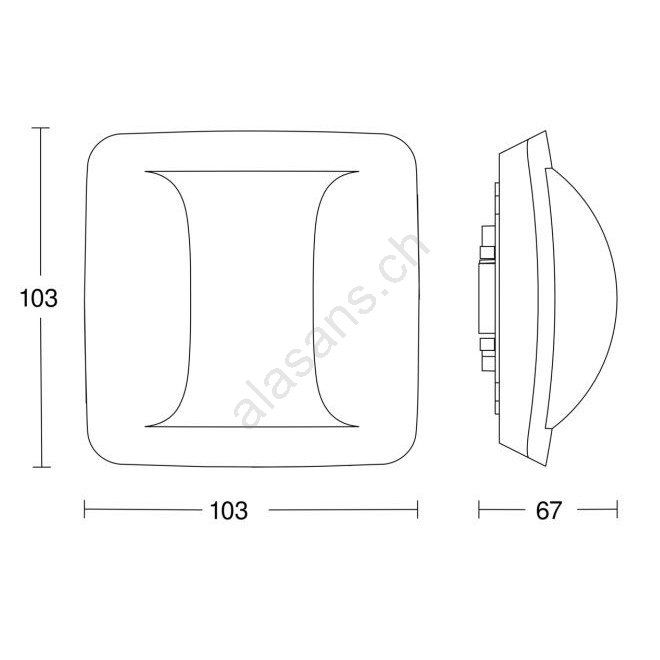 • Die weiße Farbe und die unauffällige Größe (67 mm x 103 mm) des Sensors stören im Innen- und Außenbereich nicht.