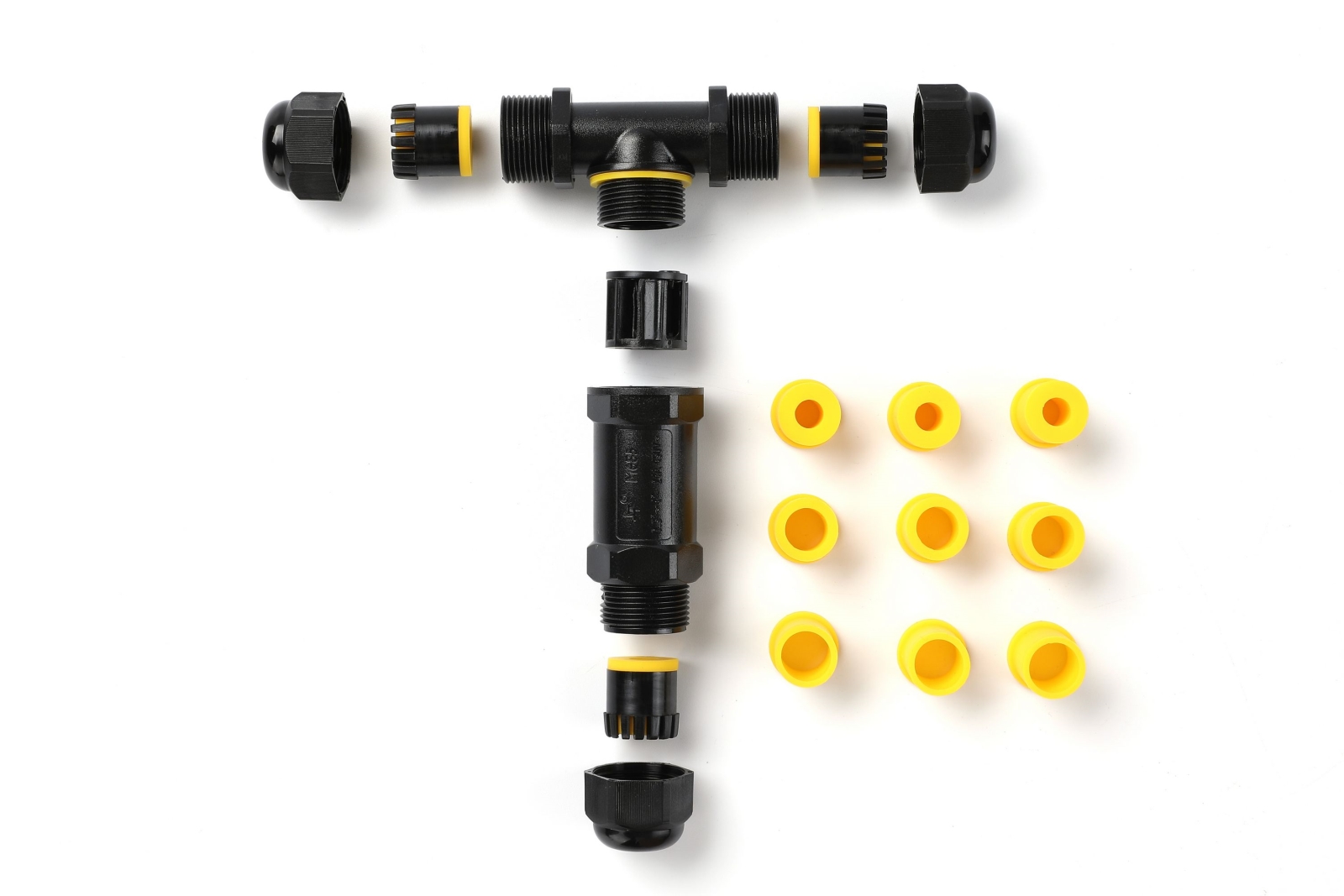 • Das Kabelverbinder "T" wird für eine sichere und zuverlässige Verbindung elektrischer Kabel verwendet.