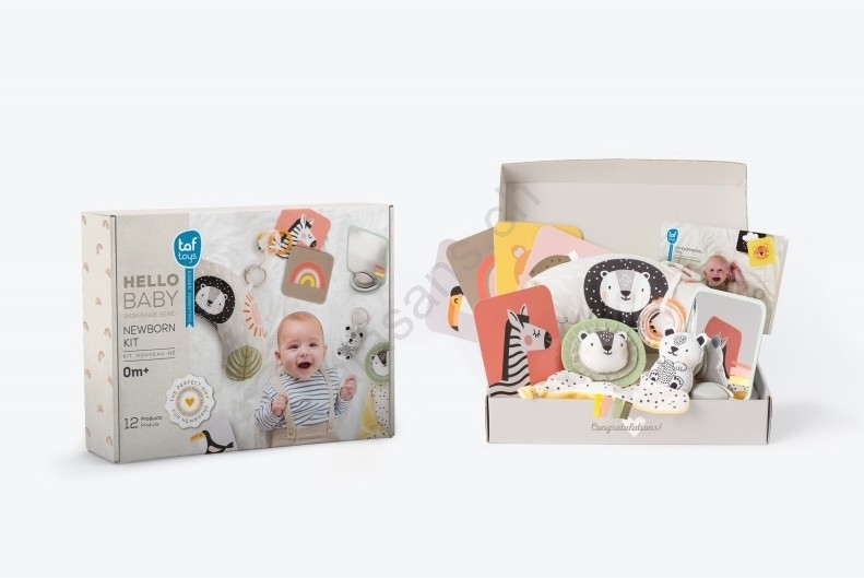 • Die Geschenkbox enthält ein speziell entwickeltes Spielzeugset für Neugeborene, das das Baby beim Spielen auf dem Bauch unterhält und die Entwicklung der einzelnen Sinne und motorischen Fähigkeiten des Babys unterstützt.