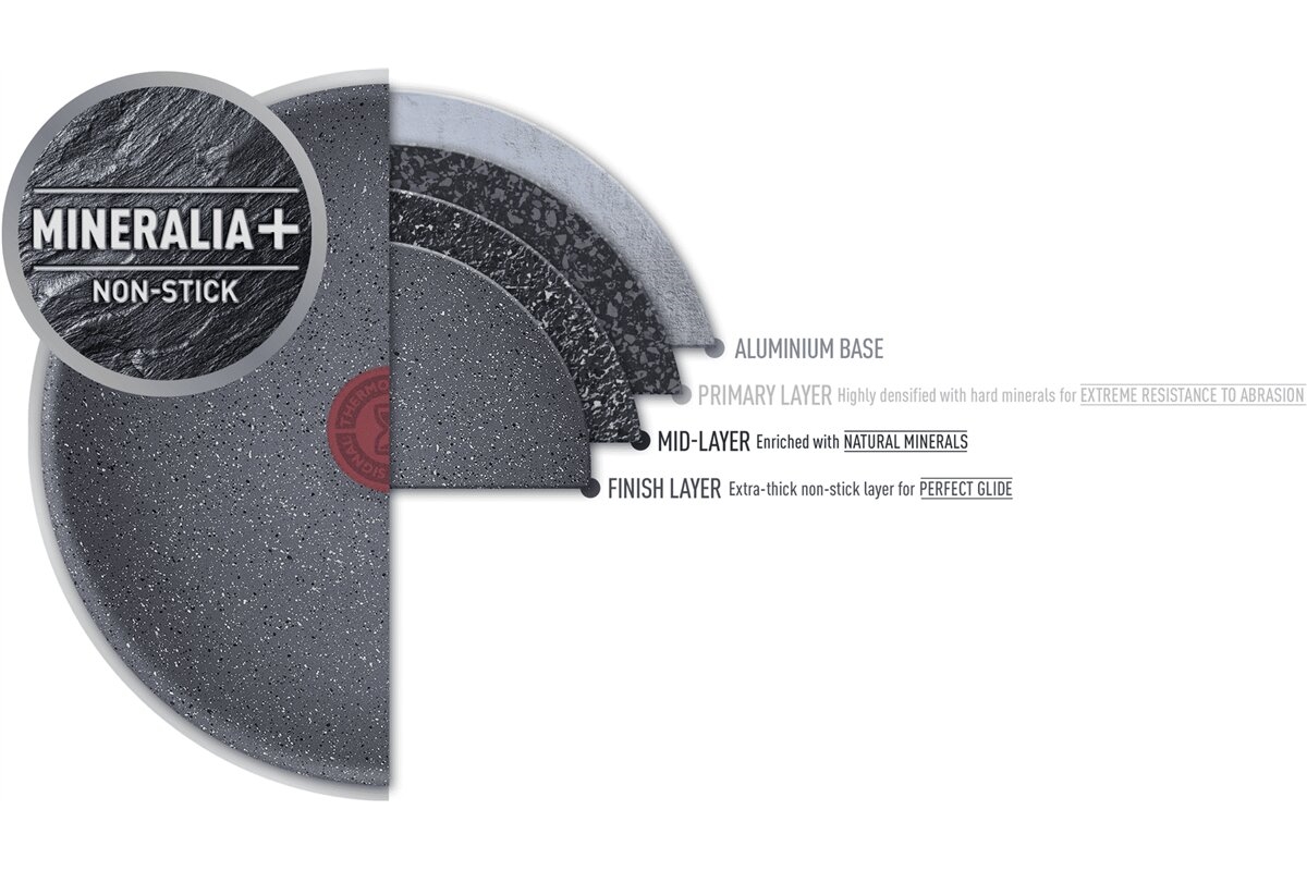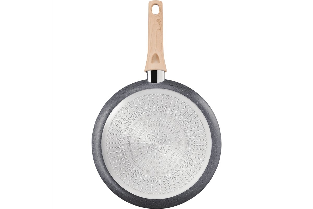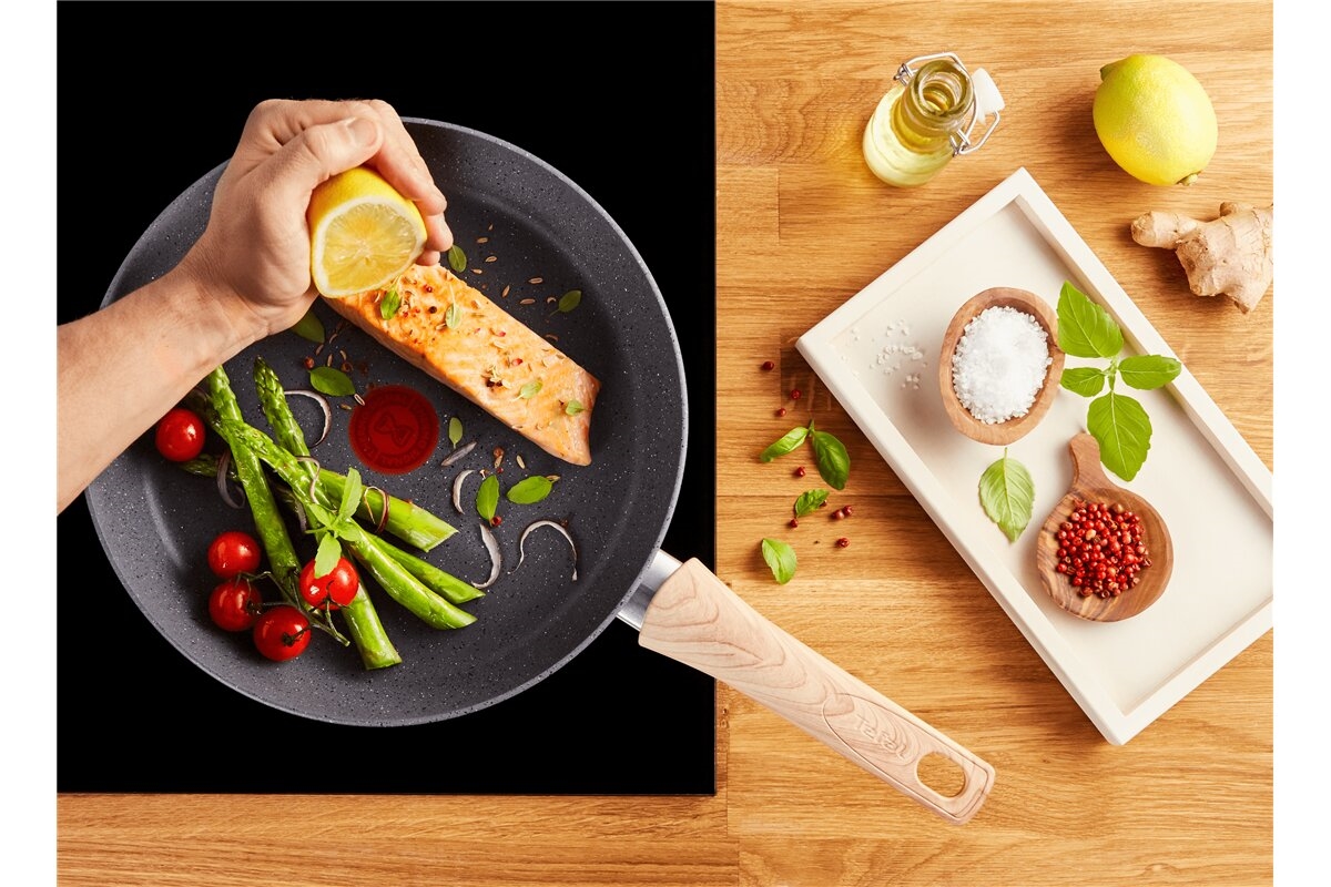• Tefal Natural Force Pfanne mit besonders widerstandsfähiger Mineralia+ Antihaftbeschichtung aus natürlichen Mineralien und einem Griff in Holzoptik.