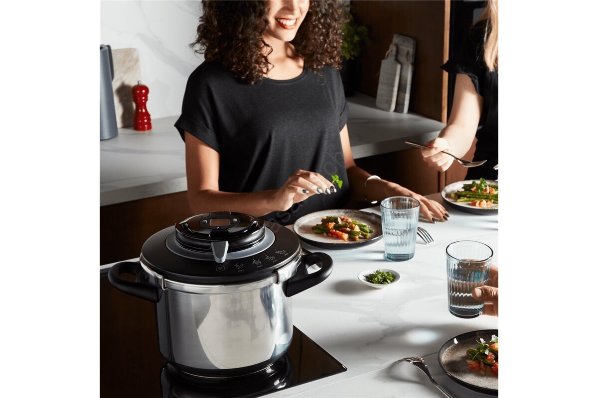 • Hochwertiger Schnellkochtopf mit 6 Sicherheitsvorrichtungen für bis zu doppelt so schnelles und energieeffizienteres Kochen.