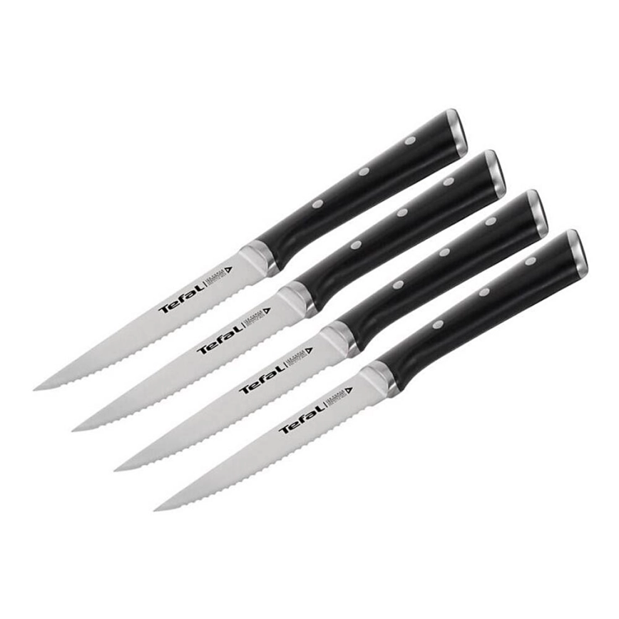 Tefal - ICE FORCE Steakmesser-Set aus Edelstahl, 11 cm, glänzender Chrom/Schwarz, 4 Stück