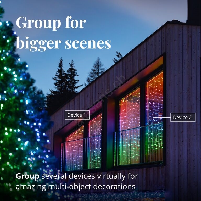 • Kombinieren Sie praktisch mehrere Twinkly-Lichter zu einer beeindruckenden Installation (max. 10 Geräte).