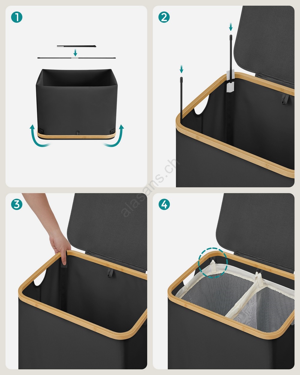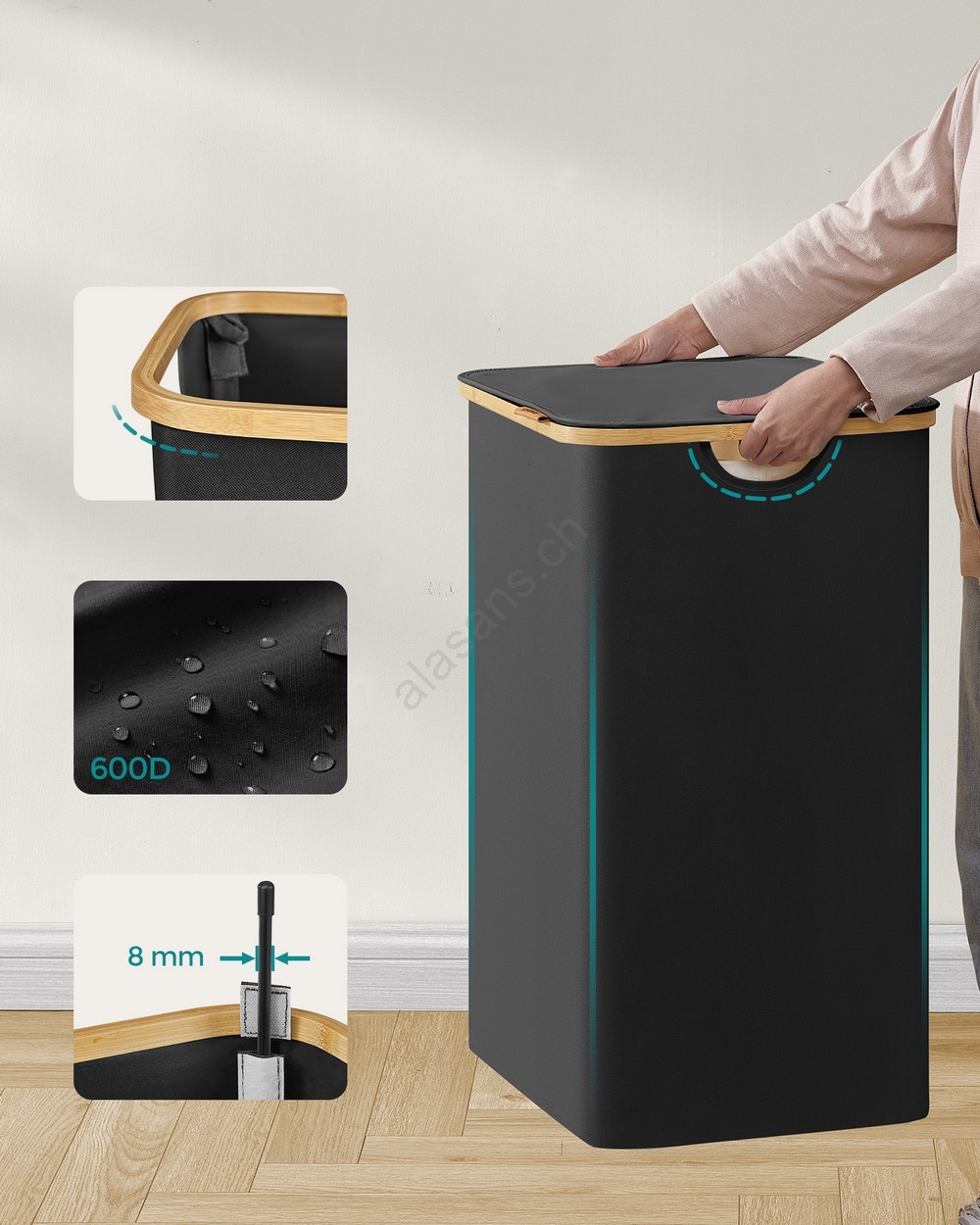• Der Deckel lässt sich mit einer Hand öffnen und schließen, sodass Sie die Wäsche schnell verbergen können - der Deckel verhindert Geruchsbildung und schützt die Wäsche vor Staub.