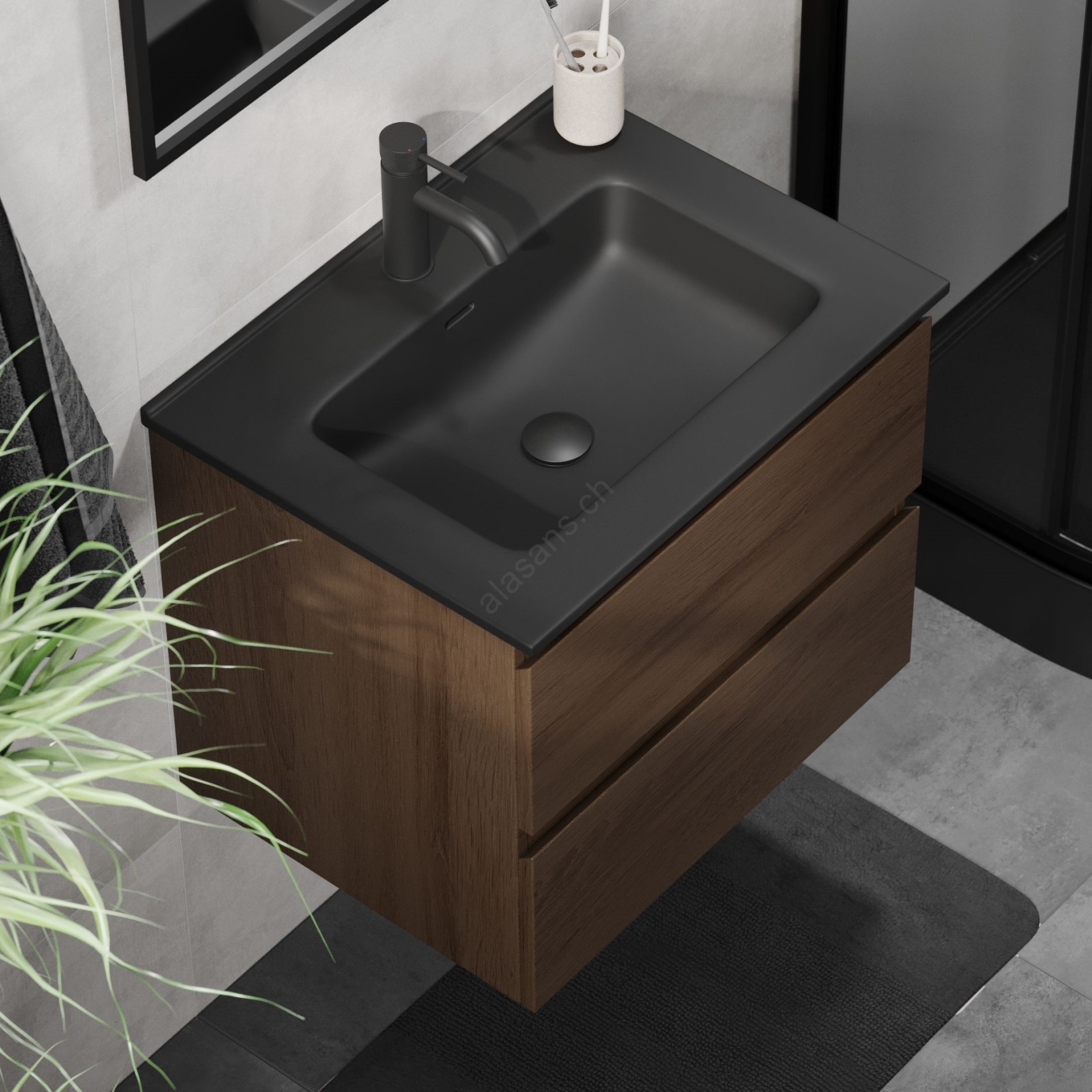 • Waschtischunterschrank mit Waschbecken CONOR 61 cm Nussbaum/Schwarz