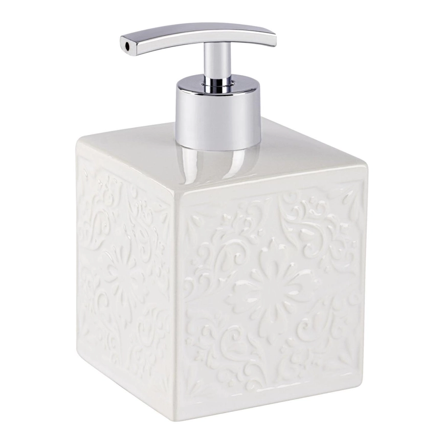 • Eleganter Seifenspender aus hochwertiger weißer Keramik.