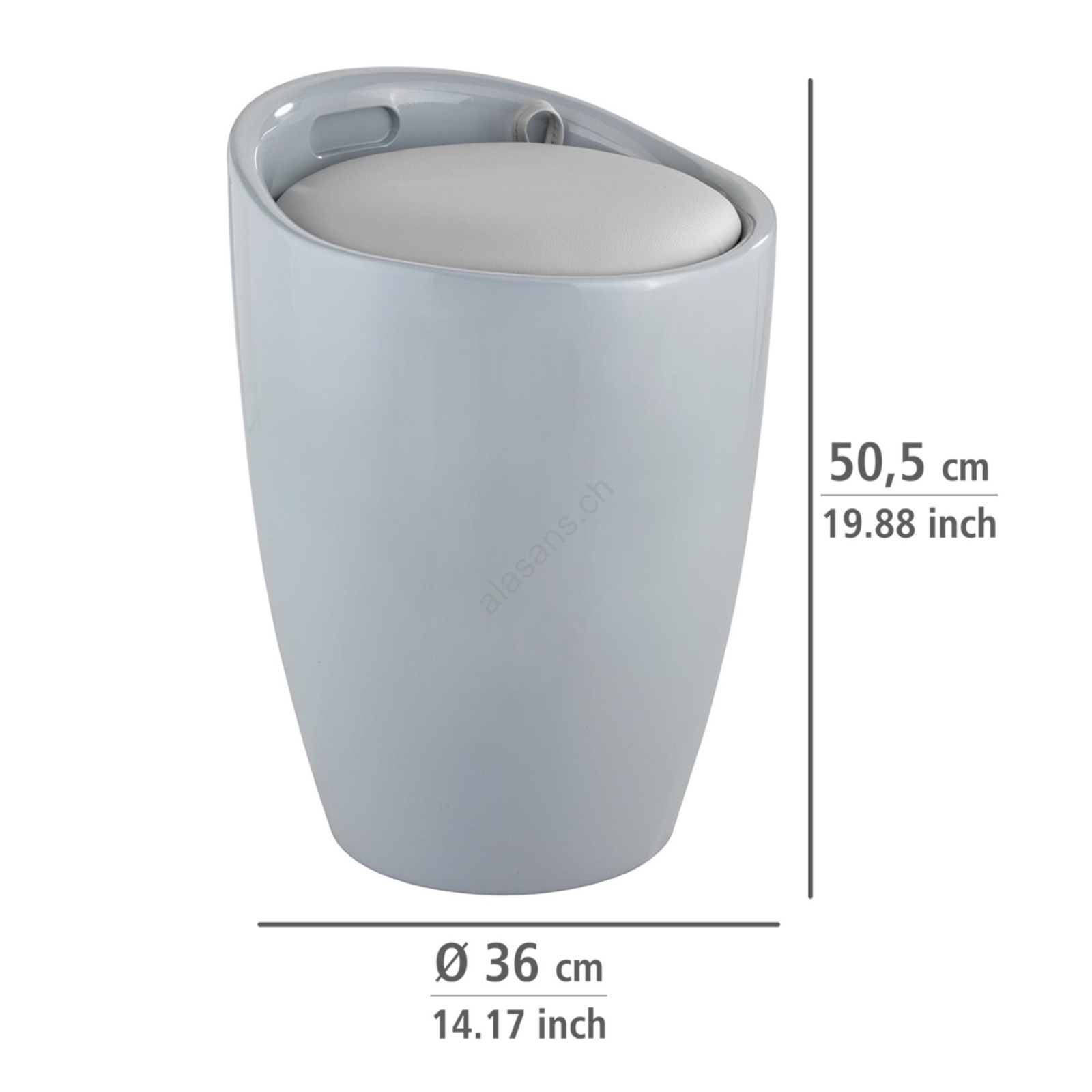 • Moderner Badezimmerhocker mit stilvollem grauem Design.