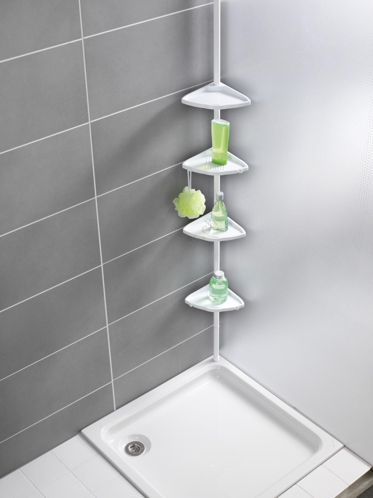 • Teleskopisches Eckregal, geeignet für Dusche und Badewanne.
