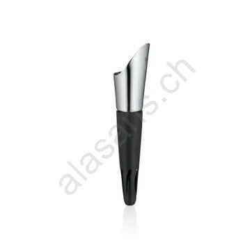 • Er fungiert als Ausgießer gegen Tropfen und ermöglicht zugleich das Dekantieren (Belüftung) des Weins direkt beim Einschenken ins Glas.