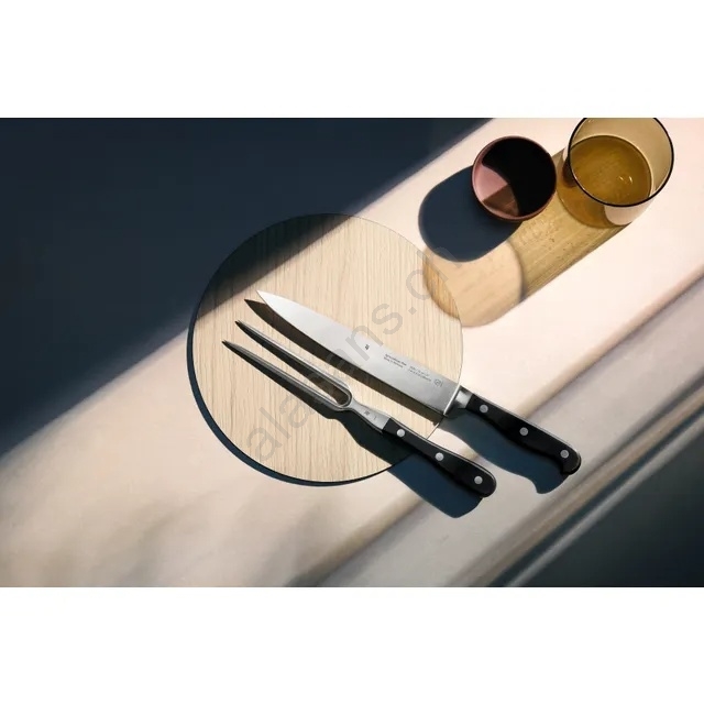 • Das Set enthält ein Tranchiermesser und eine Fleischgabel, die das Fleisch sicher hält und präzises Schneiden ermöglicht.