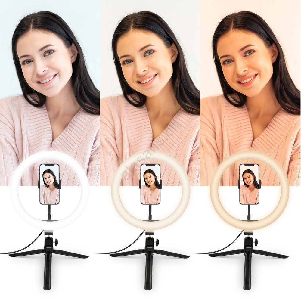 • Die universelle Handyhalterung und die runde LED-Beleuchtung können individuell positioniert und um 360° gedreht werden.