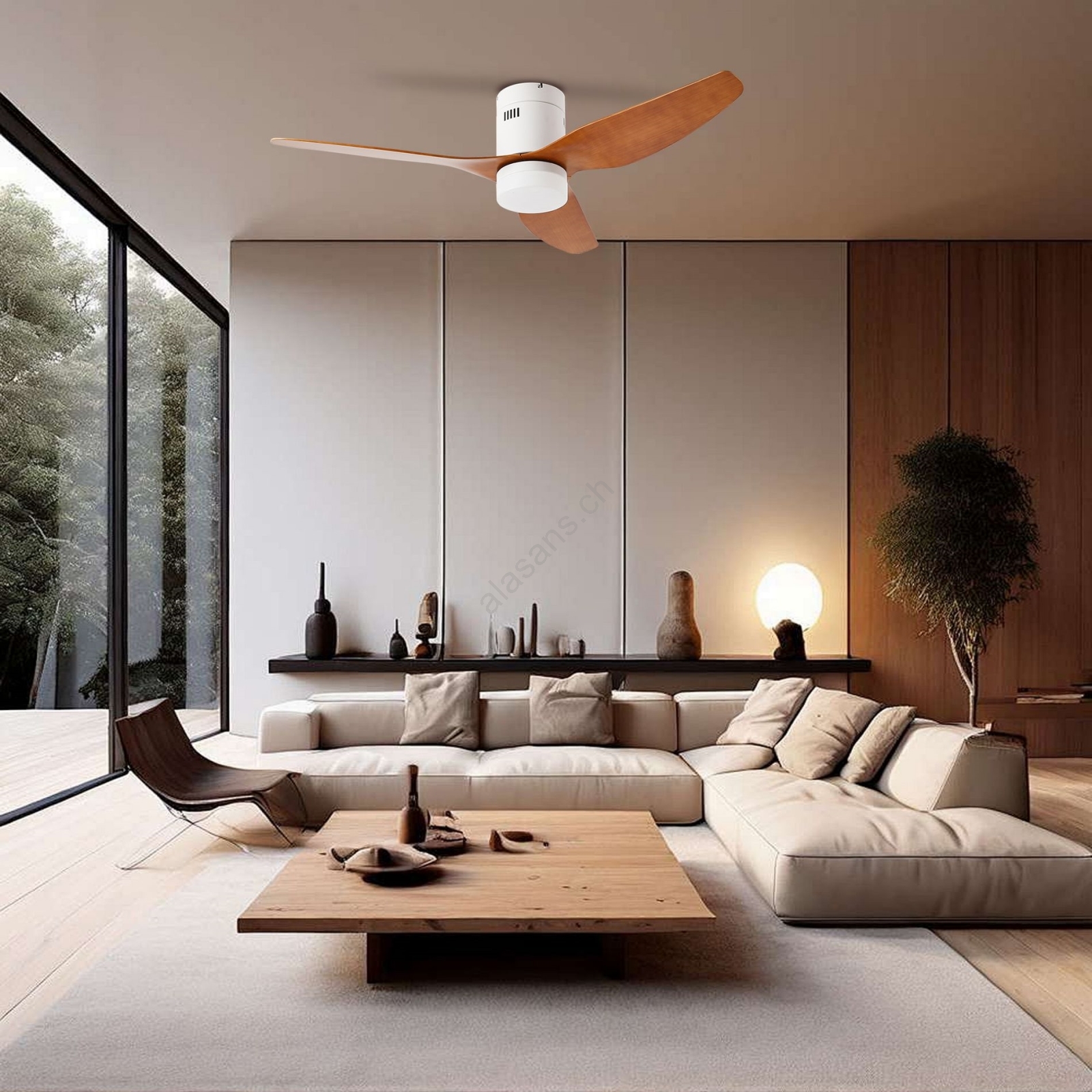 • Deckenventilator mit LED-Beleuchtung erfrischt den Raum an heißen Sommertagen.